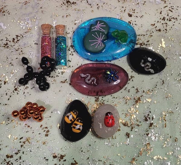Snake and spider on lrg red Pebble $10